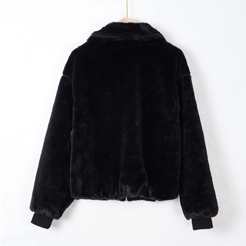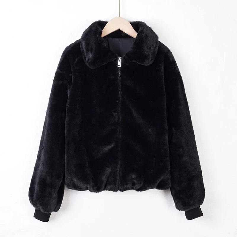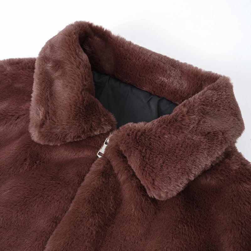 Das weiche Kunstfell sorgt für ein komfortables Tragegefühl, während der klassische Umlegekragen und der Reißverschluss den Look zeitlos und vielseitig machen. Perfekt für Alltag, Stadt und elegante Winter-Outfits.